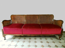 Es ist sehr bequem, hat eine elegante Farbe (roter Velour) und ist bis auf einen Minimakel perfekt erhalten.