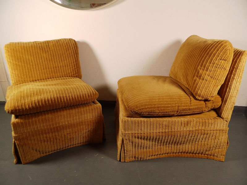 Loungesessel mit lose aufgelegten Kissen in schönem Braun und Breitcord.