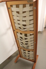 Die Bespannung ist etwas locker. Die dünne Stoffabdeckung über der Bespannung hat Risse.