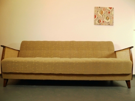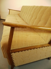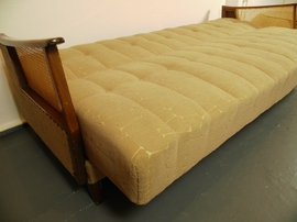 Schönes Daybed, ausklappbares Sofa mit Nieten und Wiener Geflecht aus den 50er Jahren.