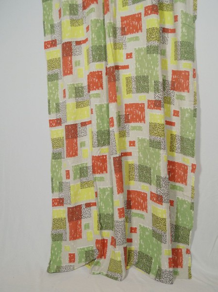 Super schöne Klassiker der Nierentisch Zeit: 3 gut erhaltene Vorhänge, Übergardinen (ohne Vorhangband) in typischem Design. Maße je Vorhang: 120 cm breit, 253 cm lang.