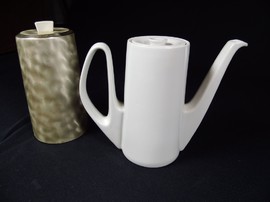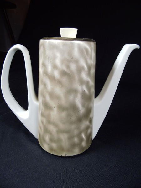 Isolierkanne von Bauscher Weiden. Gebrauchsspuren in Form von Kratzern auf dem Deckel.