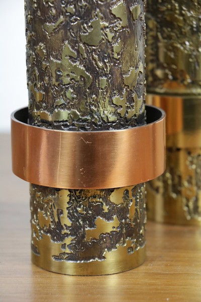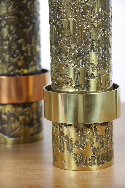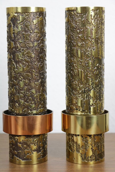 Seltene Vasen aus Messing und Kupfer im Brutalist Style.