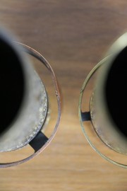 An der Kupfer farbenen gibt es in der Aufsicht eine leichte Beule am äußeren Ring (siehe letztes Foto).