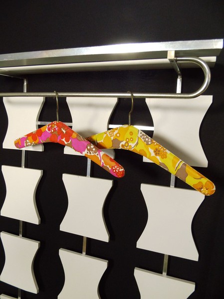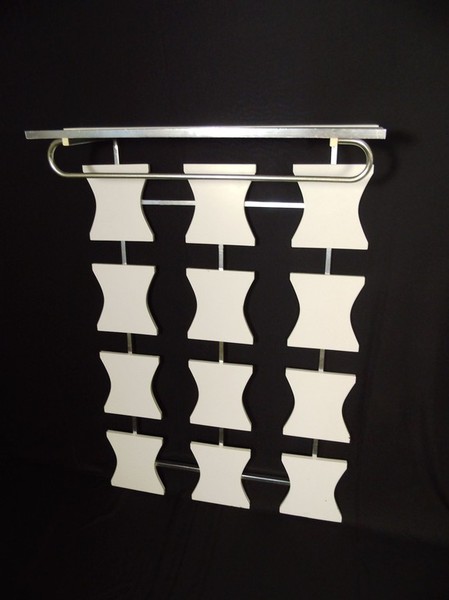 Stylische 70er Jahre Garderobe aus Alu und Holz, weiß lackiert.