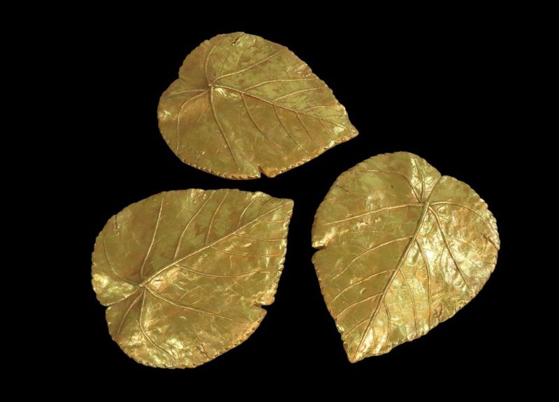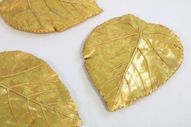Sehr dekorative goldene Blätter als Wandgestaltung.