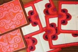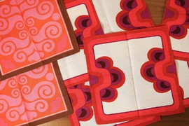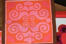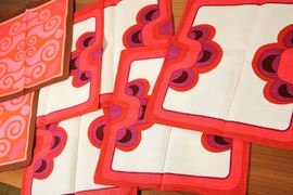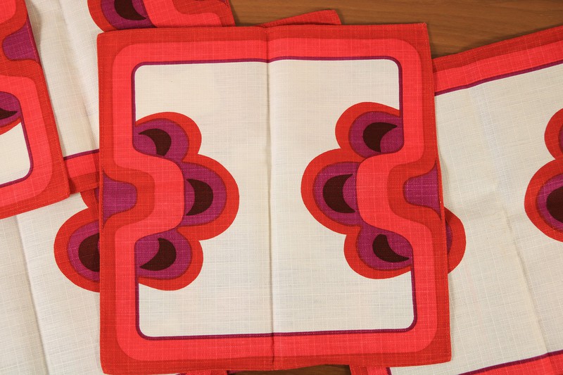 8 x wunderschöne, Original 70er Jahre Tischsets. In sehr poppigen und Zeit typischen Farben und Mustern.