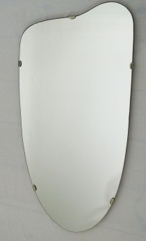 Klassiker der Nierentisch Zeit: Spiegel in organischer Form. Breite: 39 cm Höhe: 77 cm Gut erhalten. Schwere Qualität. Spiegel liegt auf Holz auf. VERKAUFT