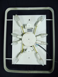 Breite x Höhe x Tiefe: 60 x 75 x 7 cm. Spiegel besitzt 8 Fassungen, kann aber auch mit weniger Glühbrinen bestückt werden. Mit Zugstrippe.