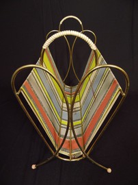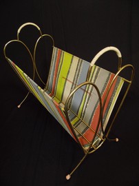 Tolles Accessoire aus den 50er Jahren: Zeitungsständer in schönem Dekor. Gebrauchsspuren am Plastikstoff (aber stabil) und Farbabrieb (vermutlich von Illustrierten). VERKAUFT